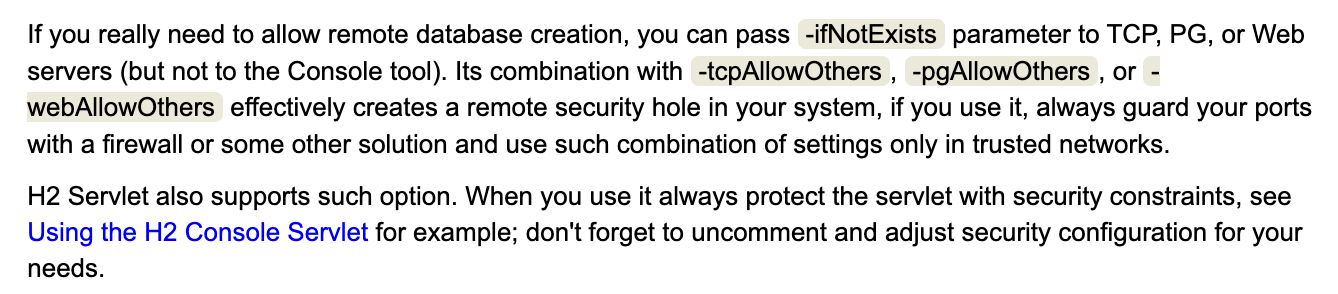 원인을 살펴보니 H2 는 기본적으로 요청 host ip 가 실행환경과 다를 경우에 접속을 허용하지 않는다고 한다.
